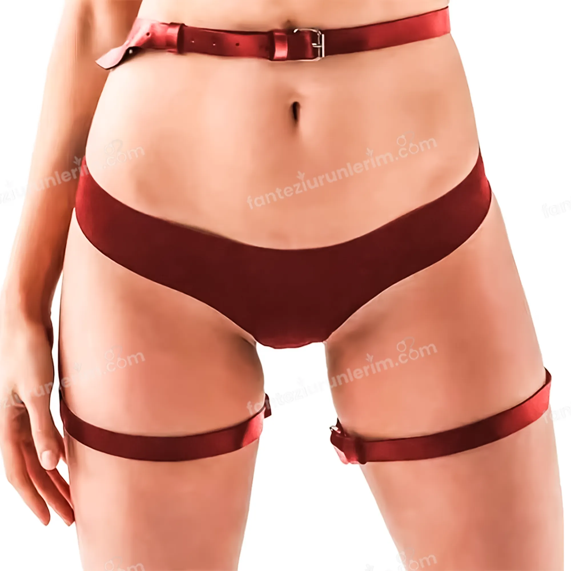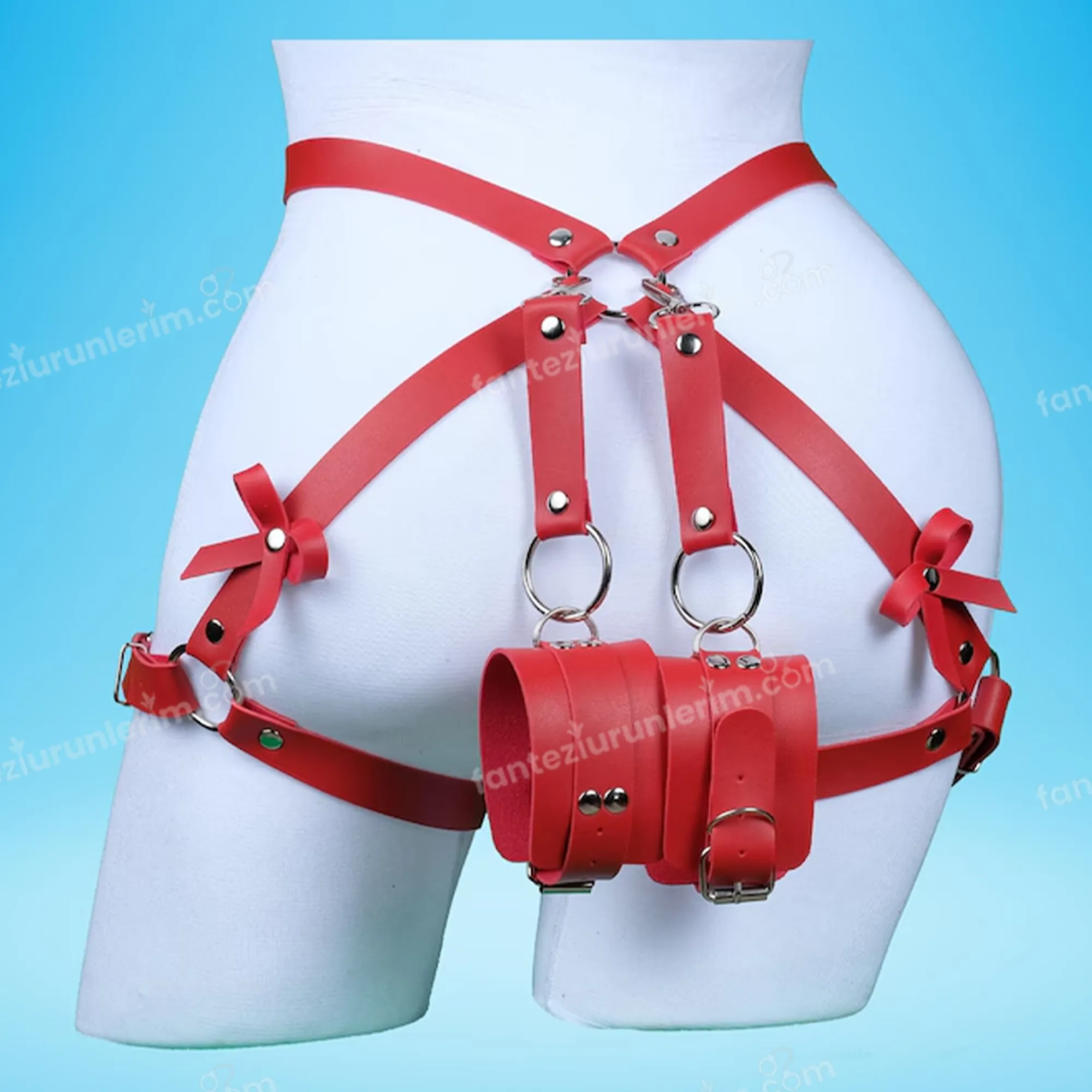 • Fantezi iç giyim koleksiyonuna farklı bir hava katacak kırmızı deri harness.