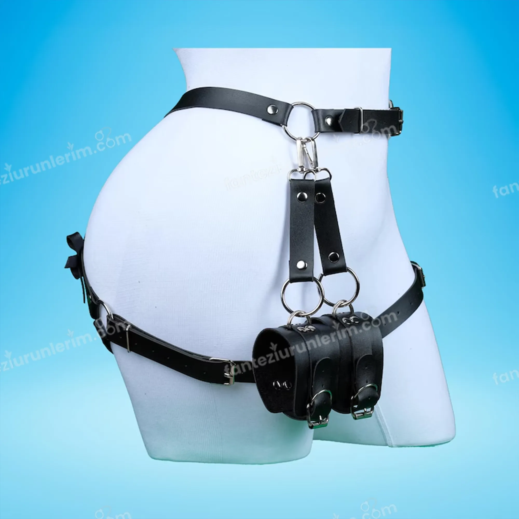 Bu ürün, belden başlayıp kalçaları ve bacakları saran kayışlarla vücuda dramatik bir hava katar. Kalça hattını öne çıkaran tasarımı, feminen görünümü cesur bir şekilde vurgular. Yanlarda yer alan el bileği kelepçeleri ise fantazi aksesuarları koleksiyonunun en iddialı detaylarından biridir.