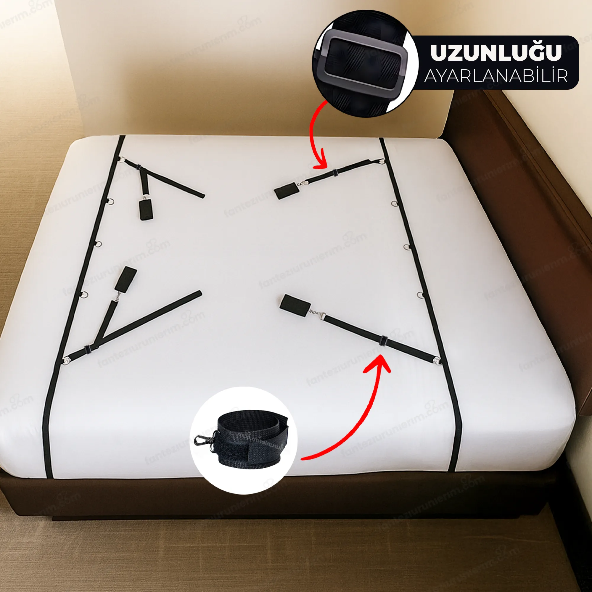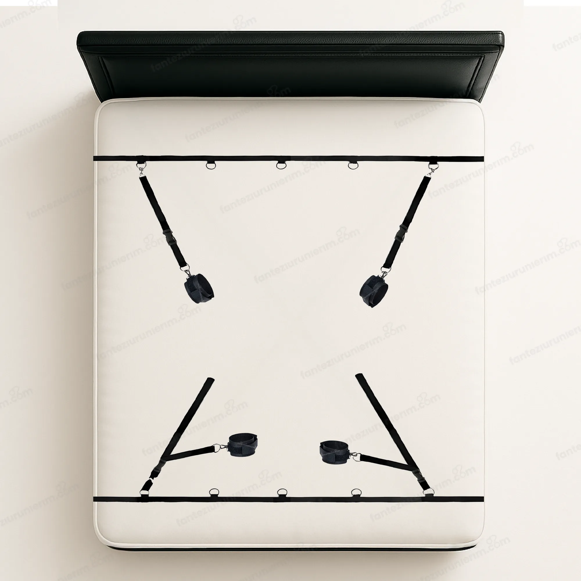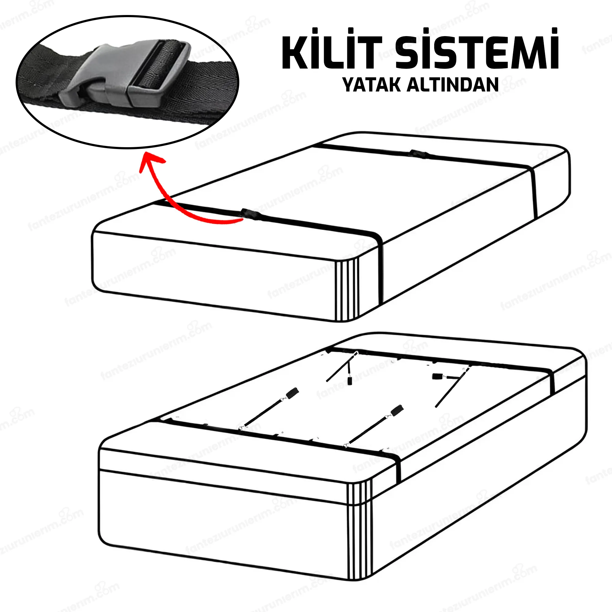 Ürünün kurulum süreci oldukça pratiktir. Yatak altından geçirilen ana kayış, yatağın yapısına zarar vermeden sabitlenir. Kelepçelerin yerleştirileceği pozisyonlar ise tercihinize göre halkalara takılarak kolayca düzenlenebilir.